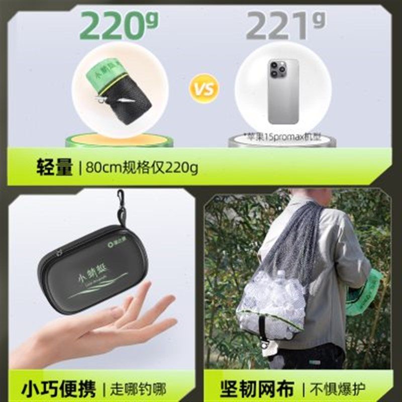 📚 渔之源谷麦速鱼护野钓专用小型涂胶鱼笼折叠束口网兜溪流口袋鱼护