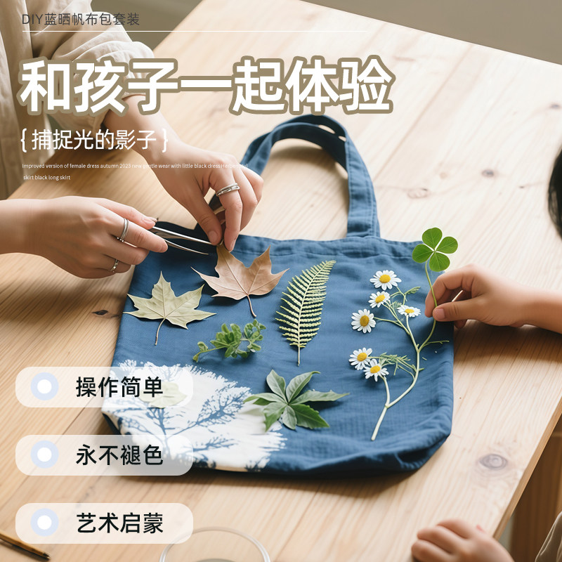 📚 蓝晒帆布包diy材料包蓝晒ab溶液非遗手工制作蓝晒工具套装蓝晒液