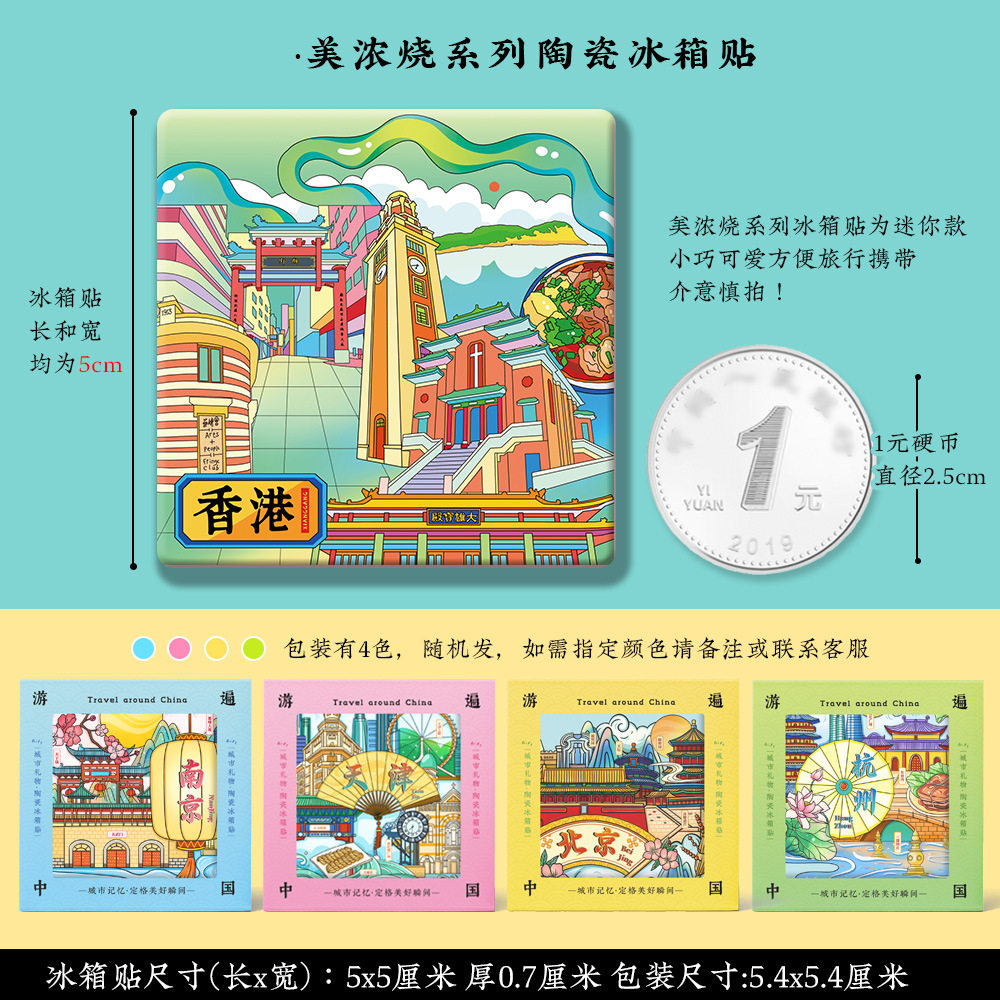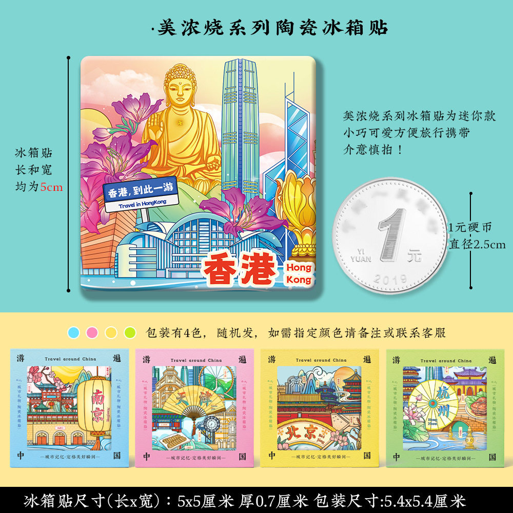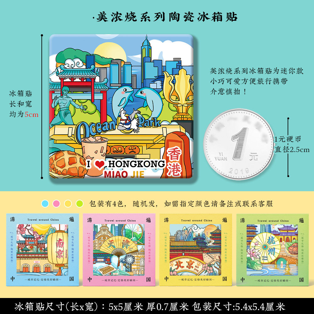 📚 文创香港太平山顶大屿山维多利亚港铜锣湾美浓烧浮雕陶瓷冰箱贴