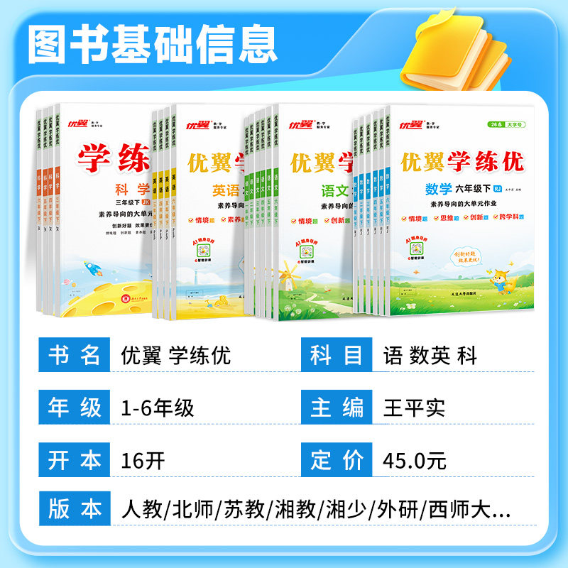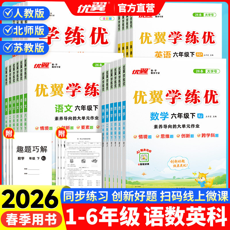 📚 2026春优翼学练优一二三四五六年级上册语文人教版下册数学英语科学测试卷全套北师大版湘教沪科华师外研计算题专项训练同步练习册