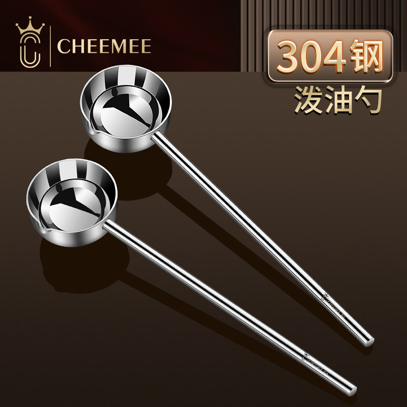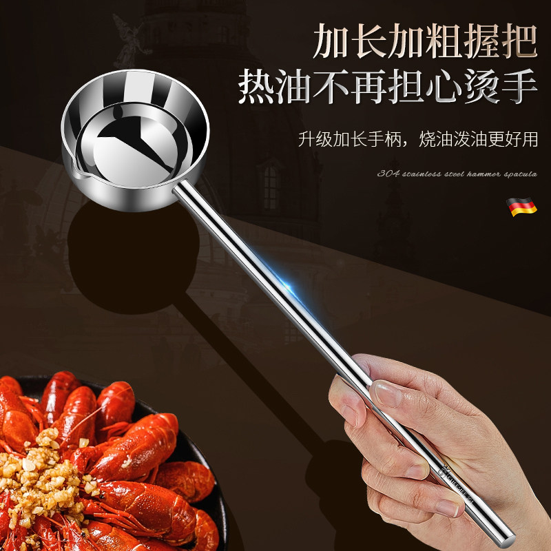📚 304不锈钢泼油勺子长柄家用汤勺烧油迷你热油小锅神器煮油勺热油
