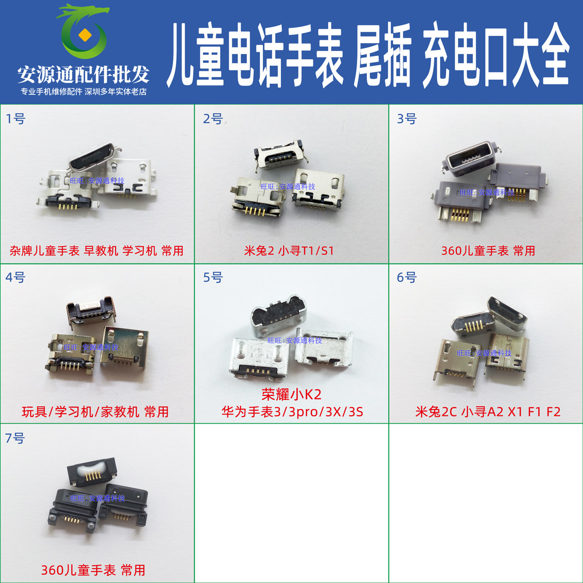 📚 儿童电话手表尾插USB充电接口适用华为3proXS荣耀小K2小寻360米兔