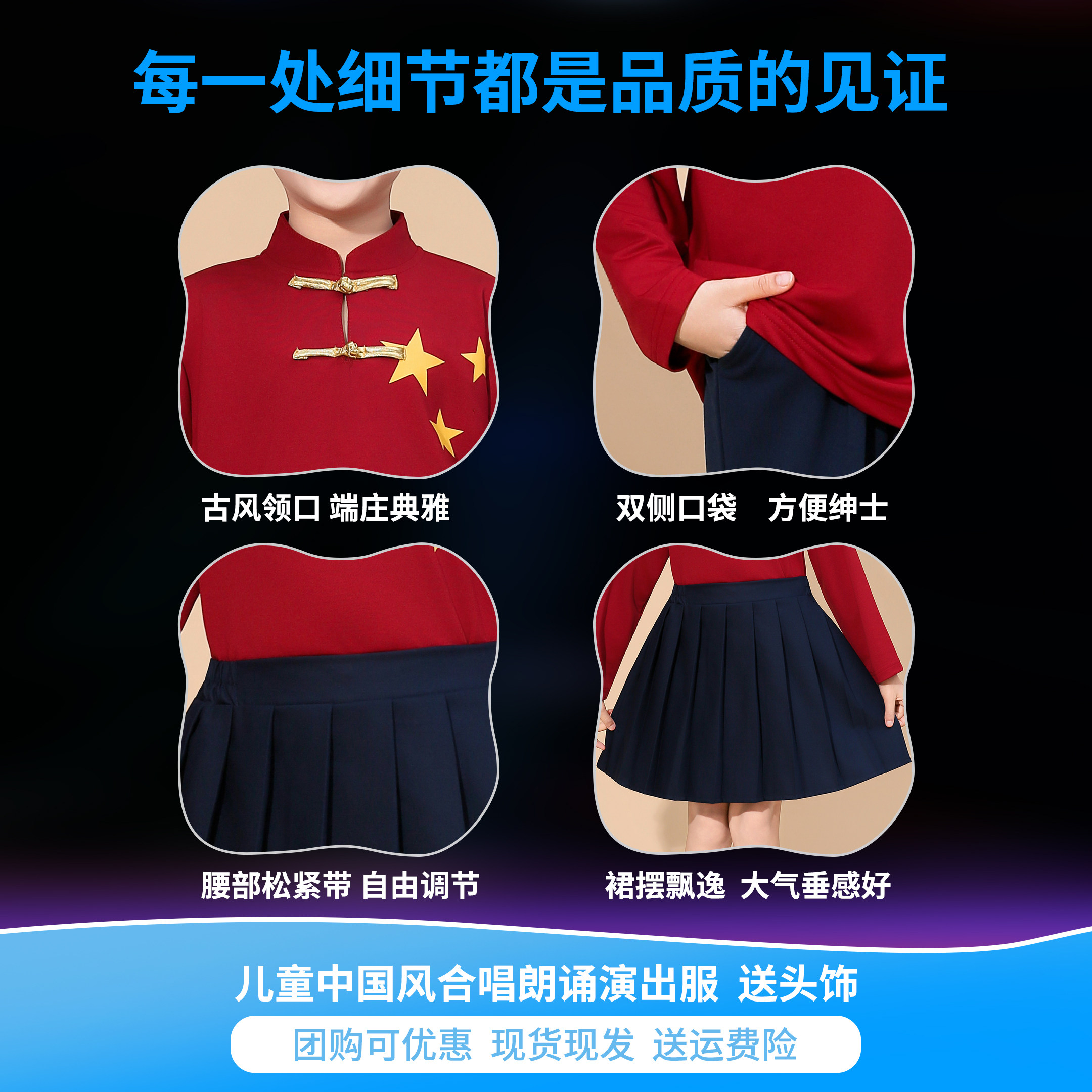 📚 元旦儿童初中小学生女童中国风大合唱团红色爱国朗诵比赛演出服装