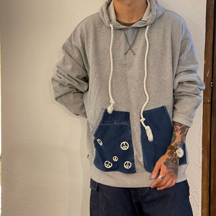 📚 Dr Collectors 新品特价 回收丹宁拼接反战LOGO刺绣石洗做旧卫衣