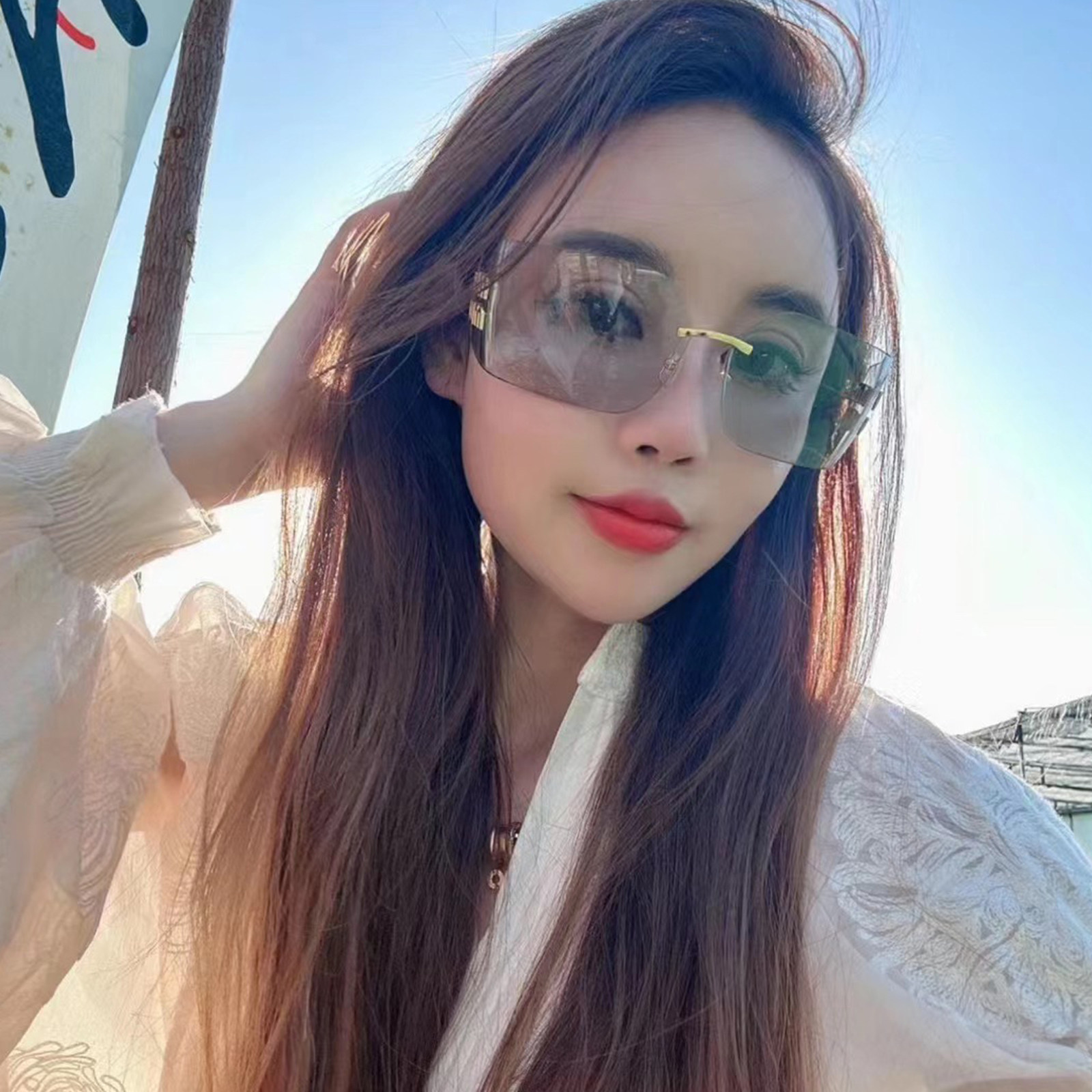 📚 54y 张元英同款眼镜女 无边框墨镜 防紫外线UV400护目镜 太阳眼镜