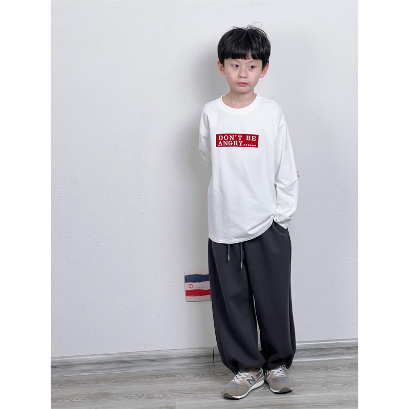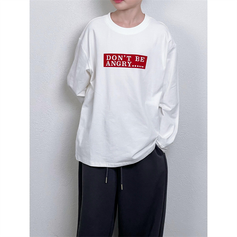 📚 童童妈定制男女童软弹舒适韩版宽松白色Don't生气复古长袖T恤秋装