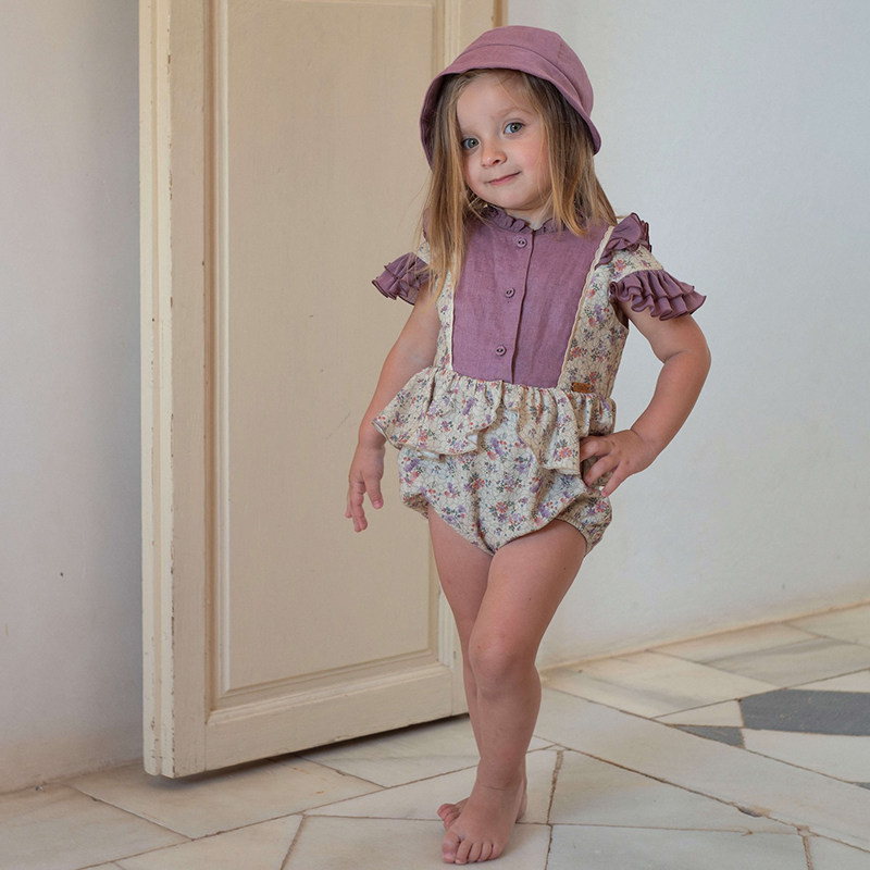📚 5折■LENFANCE现货 Popelin 25SS儿童复古英伦拼色包屁衣背带短裤