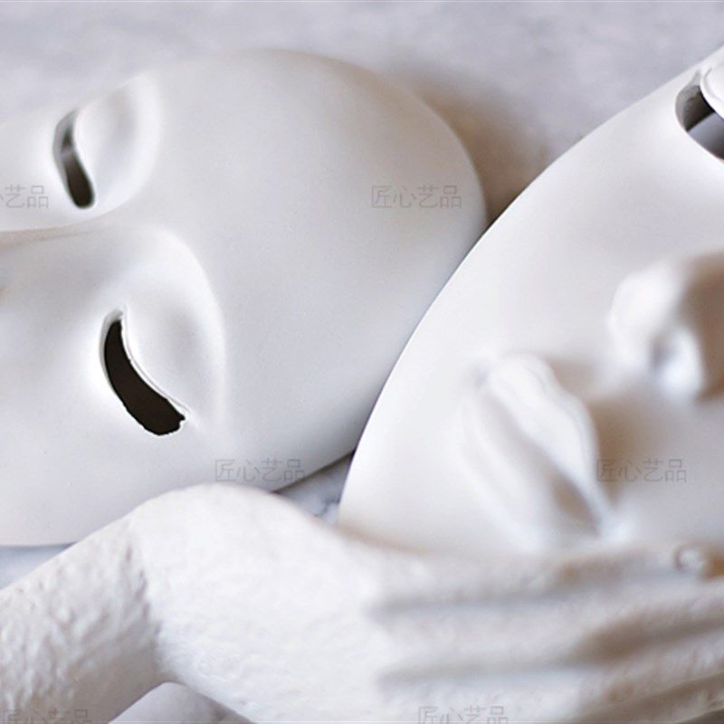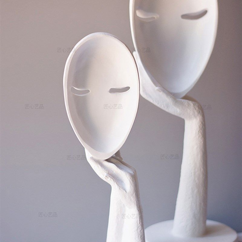 📚 纯白色面具人脸谱创意树脂抽象艺术客厅卧室家居办公书房人脸