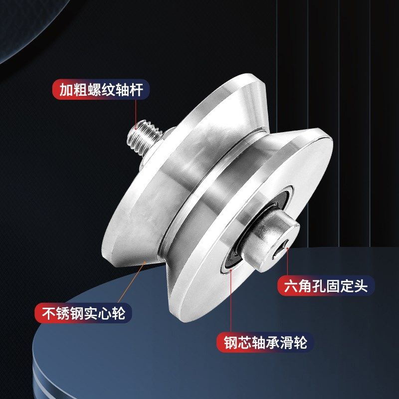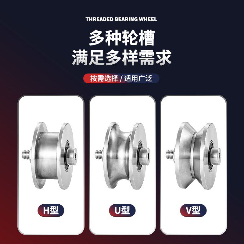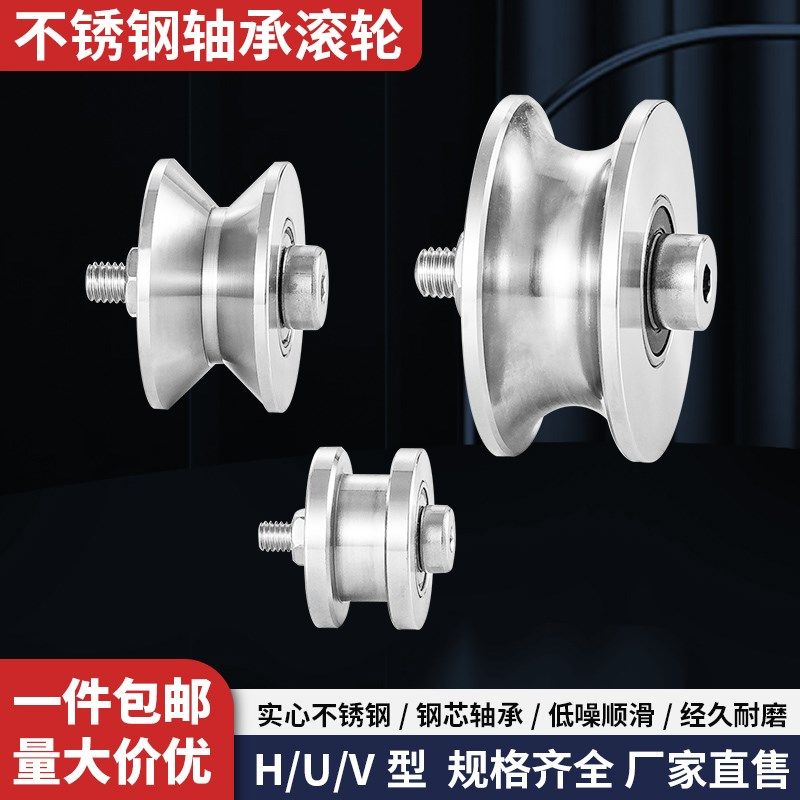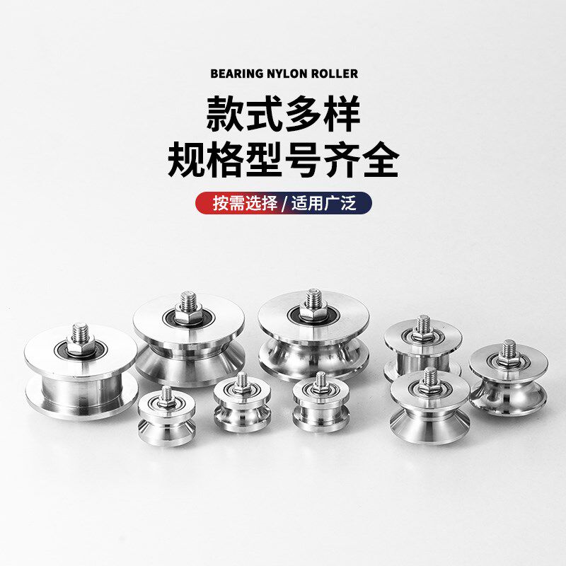 📚 304不锈钢定位轴承滑轮V型导向轨道轮子U型槽方轨配轴机械定制轮