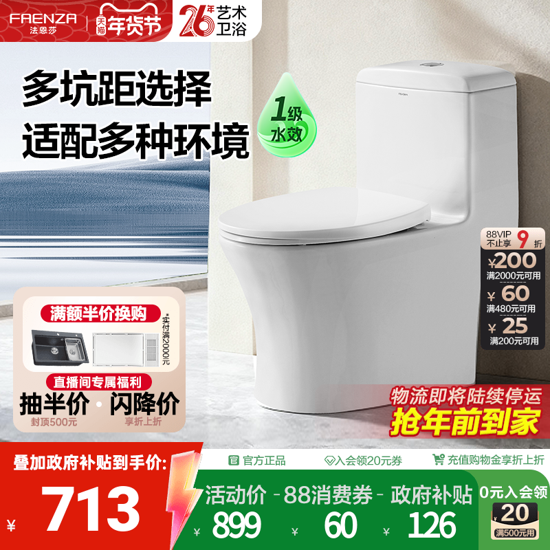 📚 法恩莎卫浴卫生间家用小坑距马桶虹吸式一体式抽水坐便器FB16128