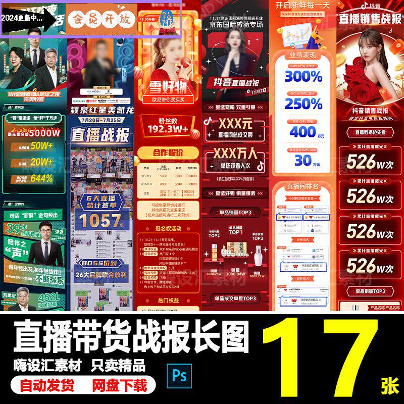 📚 电商抖音主播直播带货销售年度数据战报战绩公众号长图PS素材模板