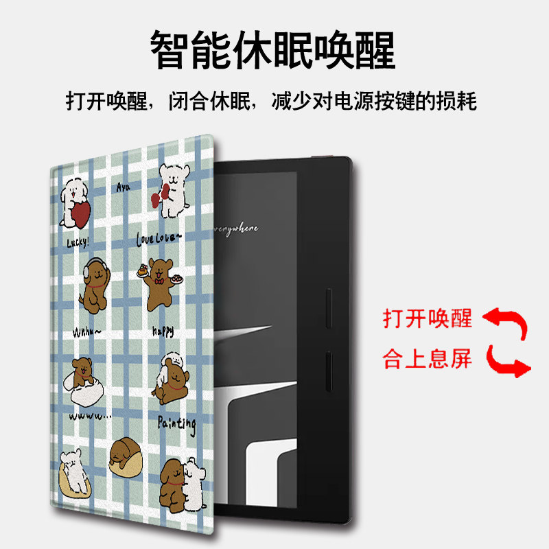 📚 适用文石leaf5小白马3格纹小狗磁吸BOOX电子书poke6s保护套tab8壳