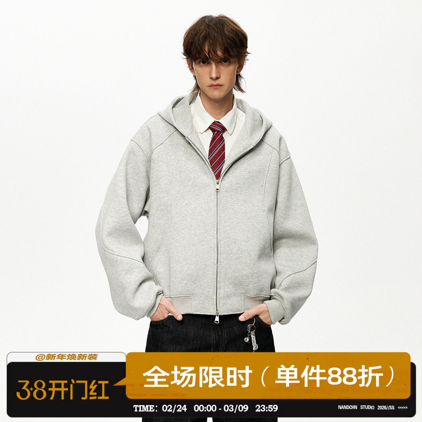 📚 男道cleanfit短款500G重磅加绒连帽卫衣拉链开衫外套男女休闲上衣