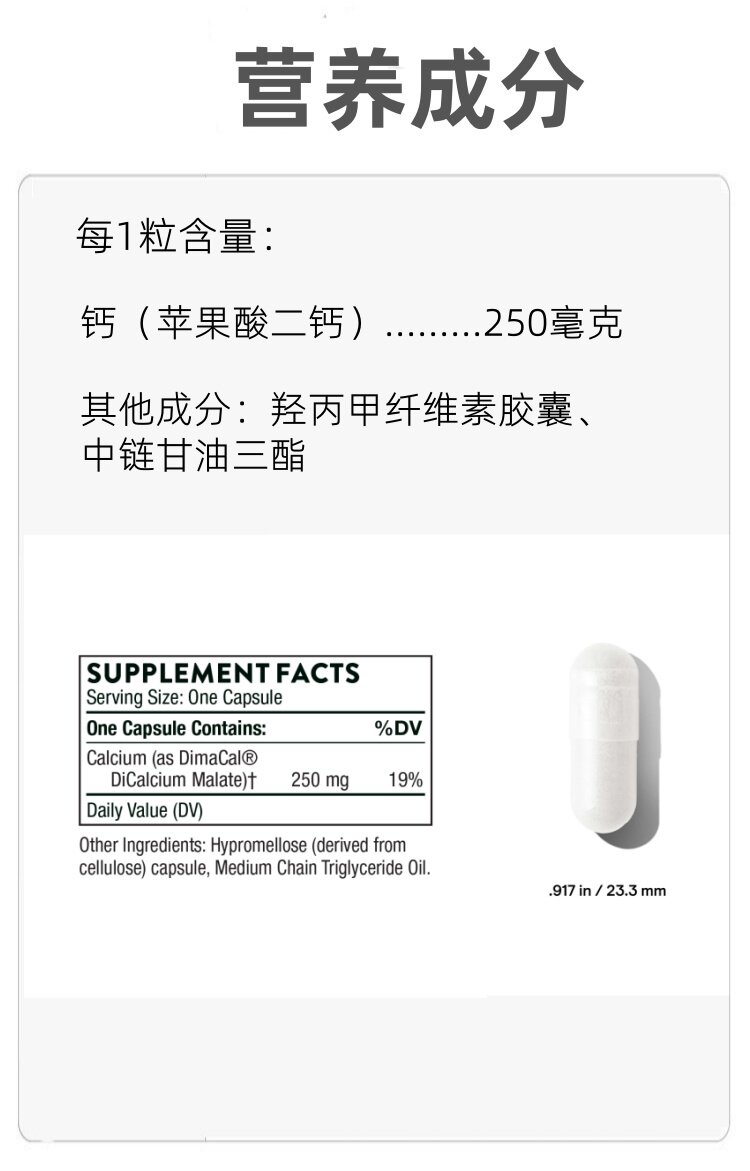 📚 美国Thorne悦恩苹果酸钙成人钙骨骼关节牙齿补钙孕妇中老年120粒