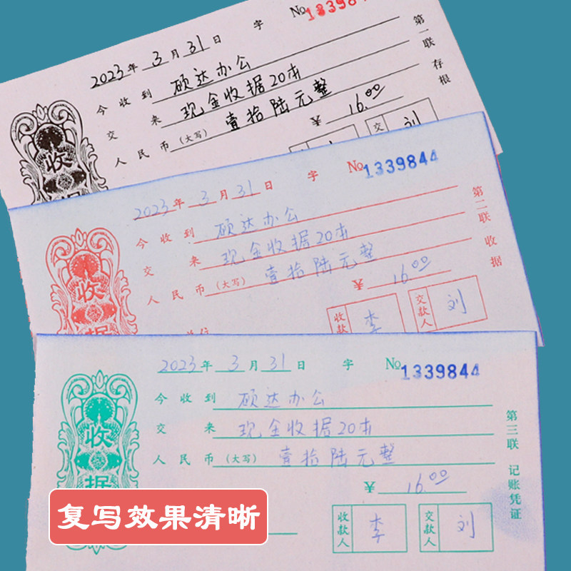 📚 红星收款收据二联三联收据单本票据无碳复写现金今收到2联3联交款