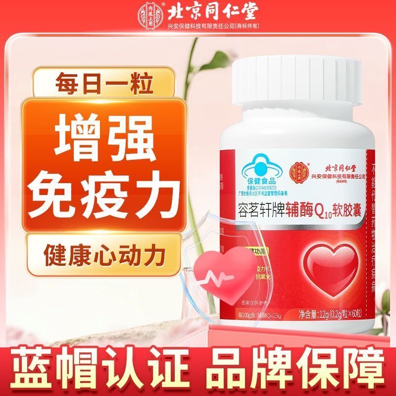 📚 北京同仁堂辅酶Q10胶囊蓝帽保健品保护心脏中老年人辅酶q10片正品