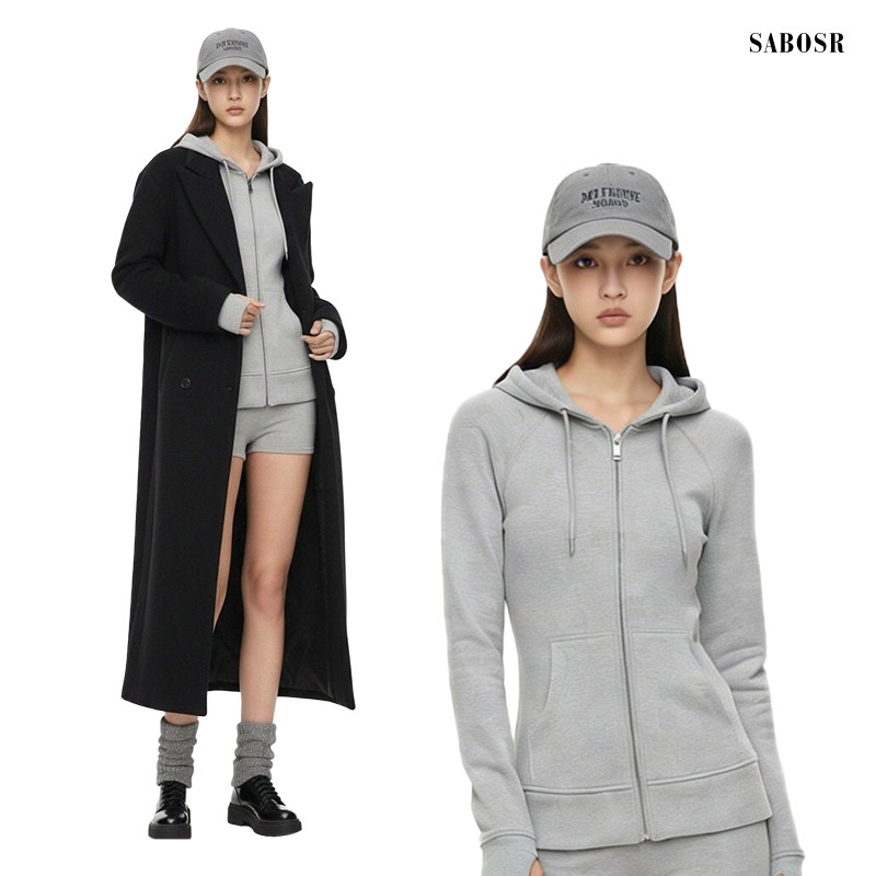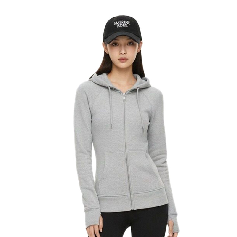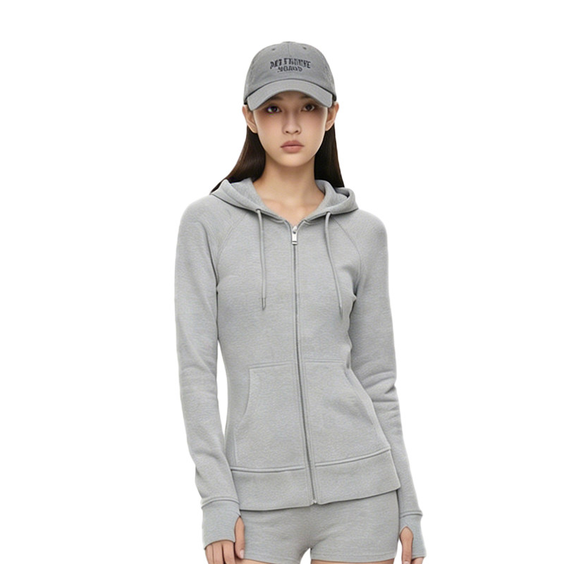 📚 灰色修身卫衣外套女秋冬季显瘦正肩短款连帽内搭收腰上衣春季穿搭
