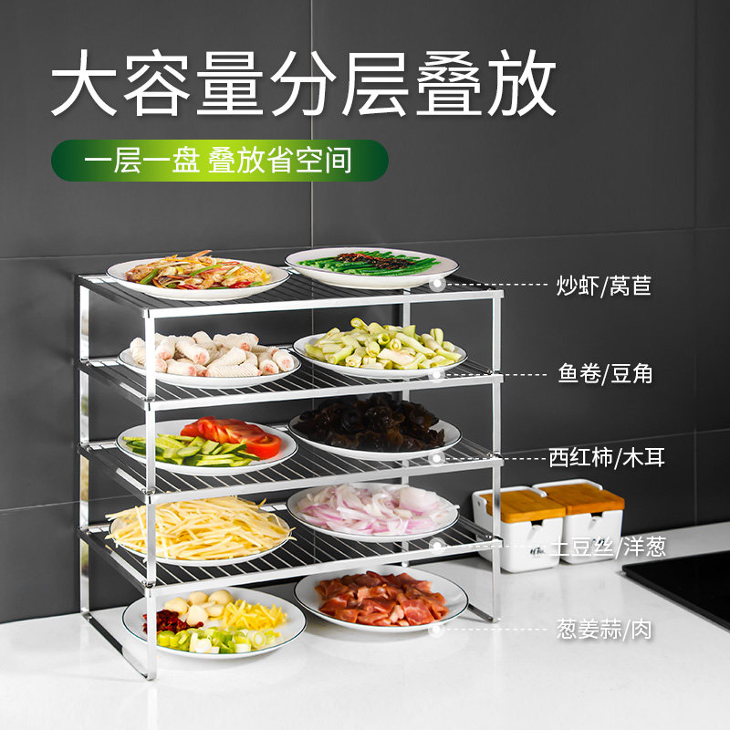 📚 厨房备菜置物架台面可叠加家用收纳层架304不锈钢多层火锅备菜架