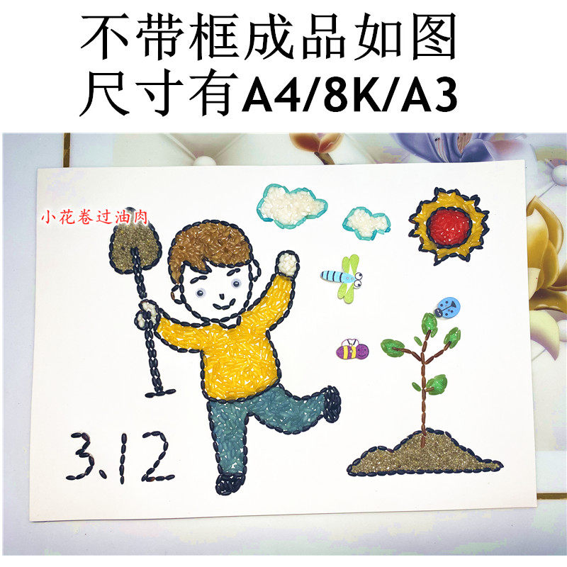 📚 312植树节手工diy五谷杂粮画豆子种子粮食画幼儿园儿童手工作业