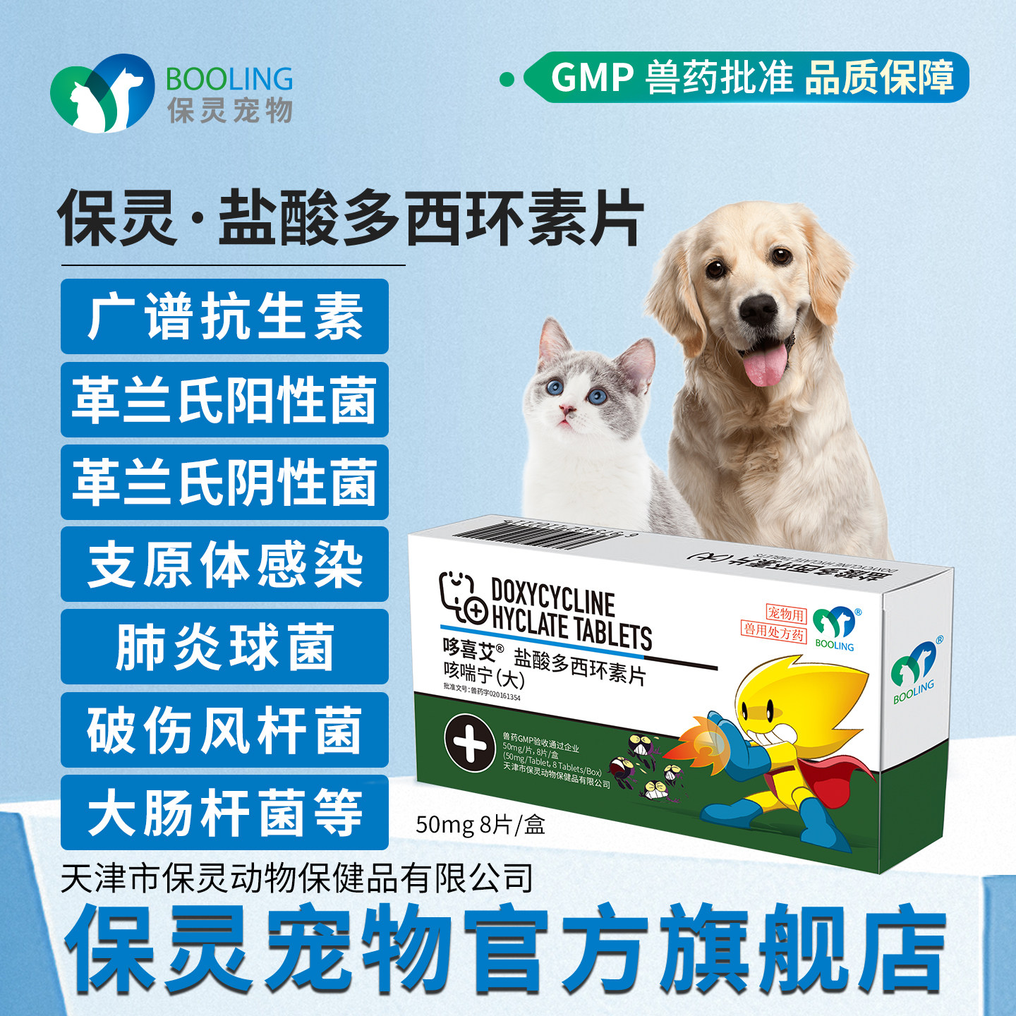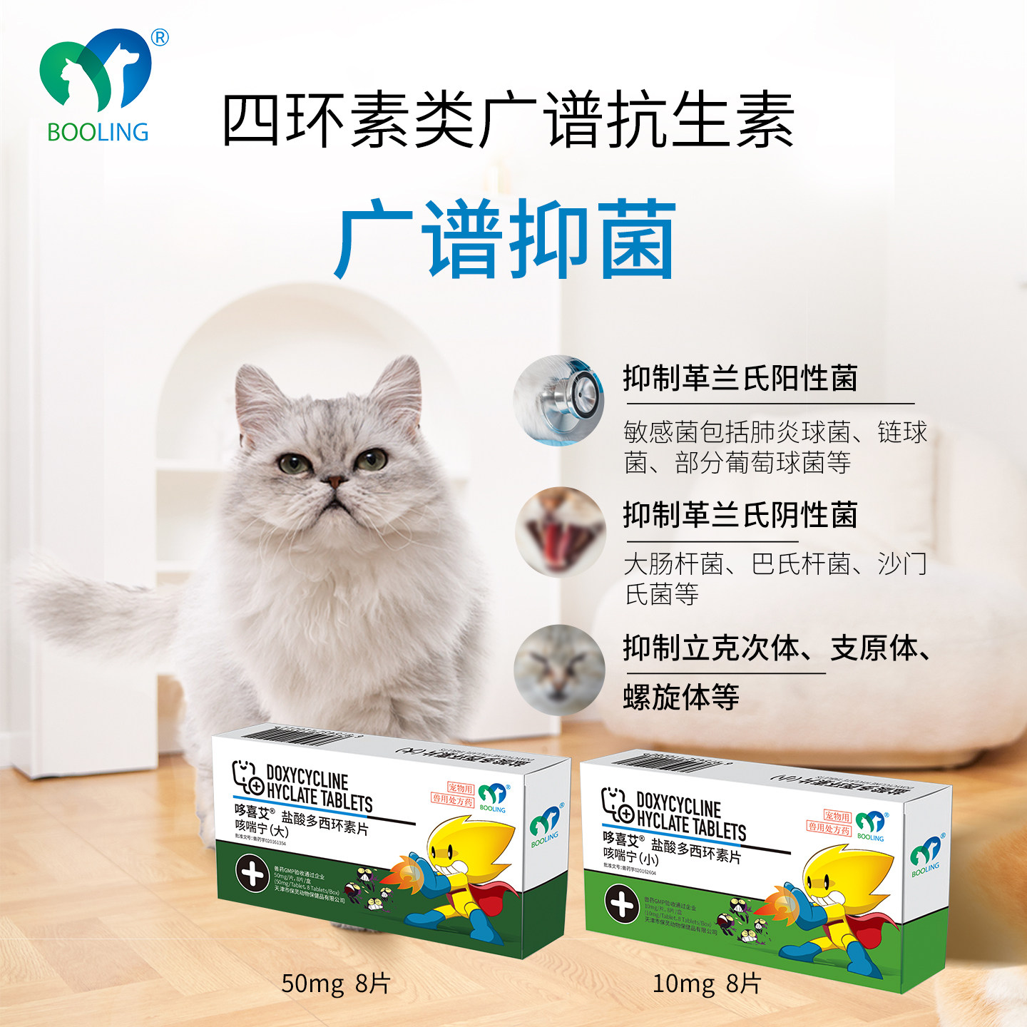 📚 BOOLING保灵咳喘宁盐酸多西环素猫狗感冒咳嗽消炎犬窝咳猫鼻支8片