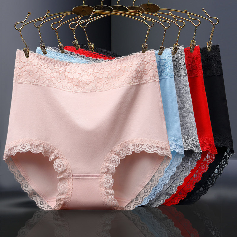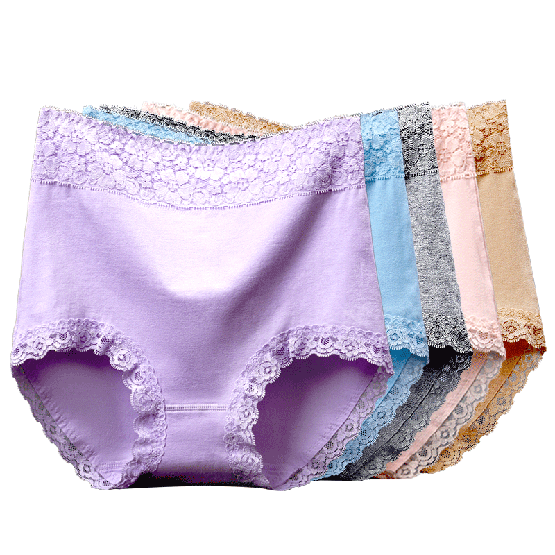 📚 维曼姿4条装 棉质裆部高腰收腹提臀无痕蕾丝大码棉质面料内裤女