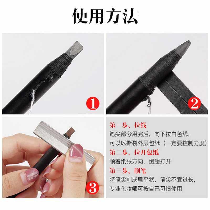 📚 金宝宝同款拉线防水麻纹绣持久初学者化妆师专用眉笔鸭嘴扁头硬芯