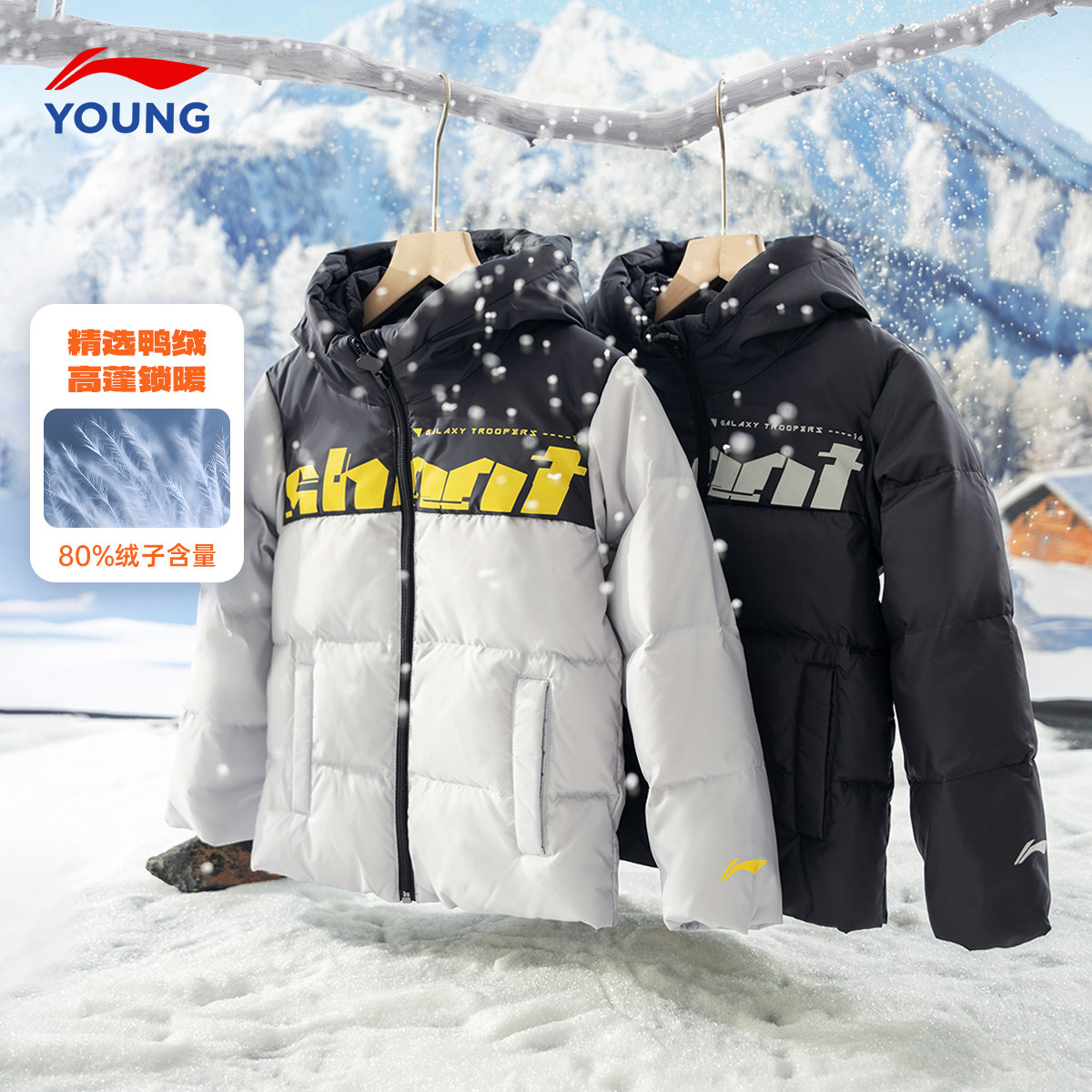 📚 李宁儿童羽绒服2025新款男女大童短款鸭绒加厚保暖黑色羽绒外套