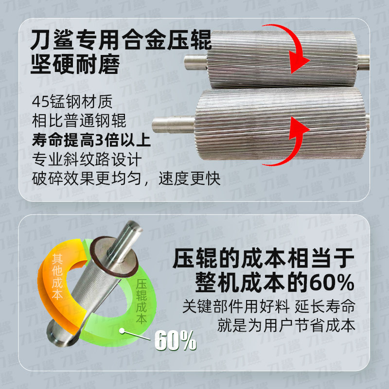 📚 刀鲨对辊破碎机玉米破瓣机花生高粱大豆压扁机粮食养殖粉碎机商用