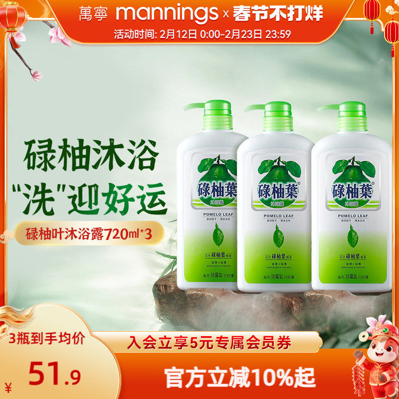 📚 香港万宁碌柚叶沐浴露柚子叶好运去晦气控油清爽滋润沐浴乳3瓶装