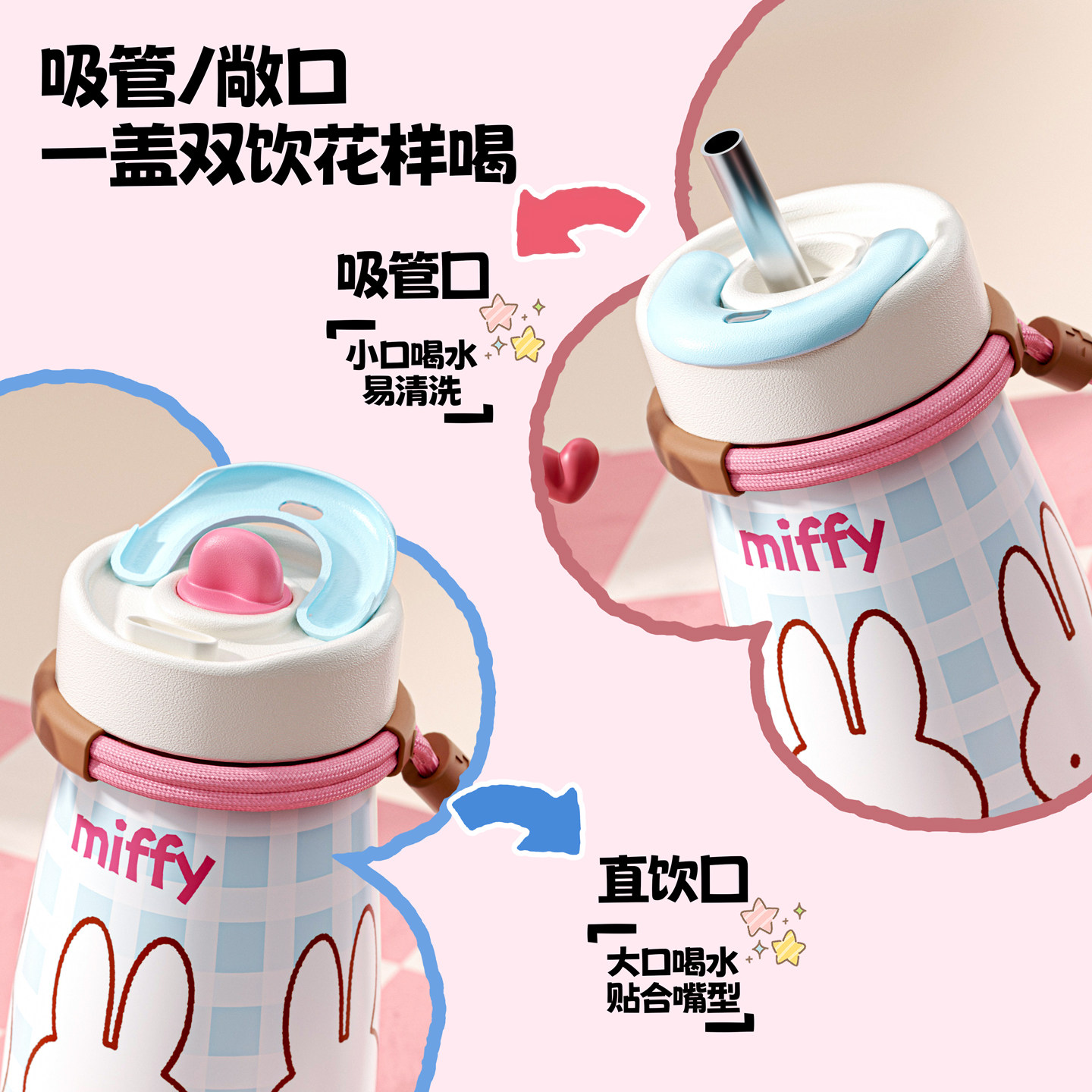 📚 米菲保温杯女生可爱2025新款高颜值儿童学生上学专用便携吸管水杯