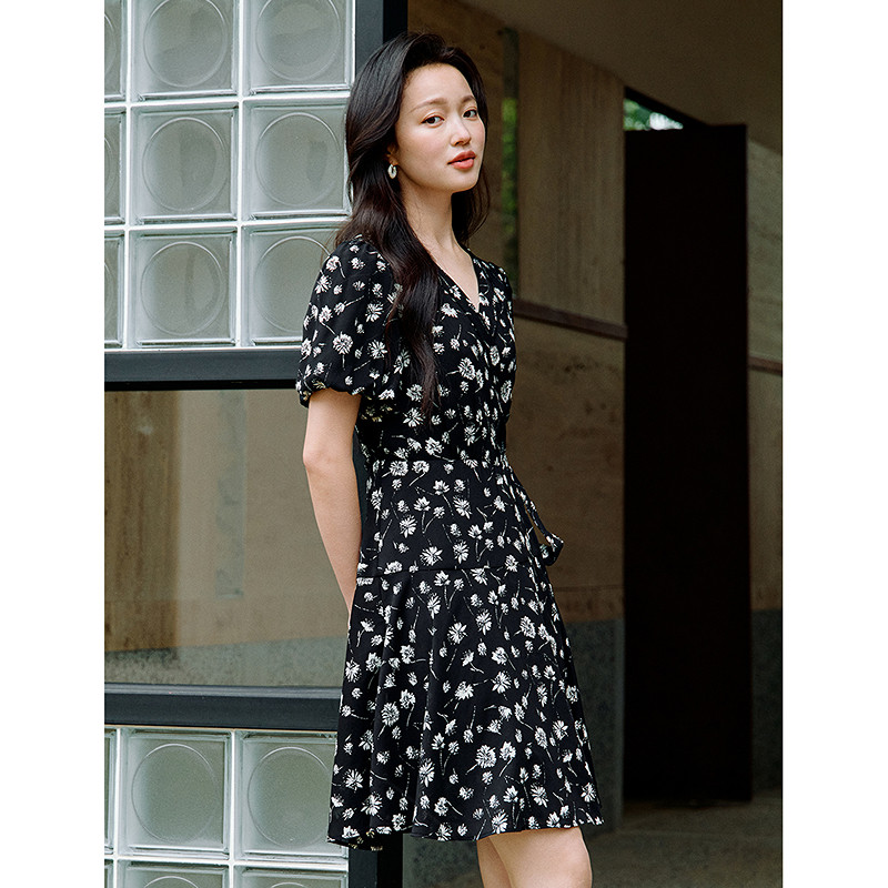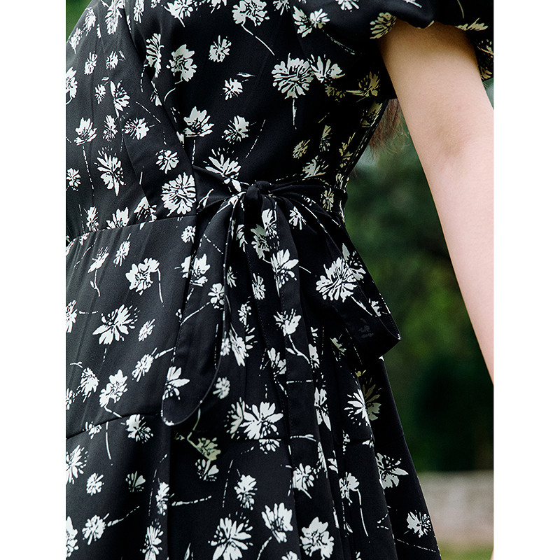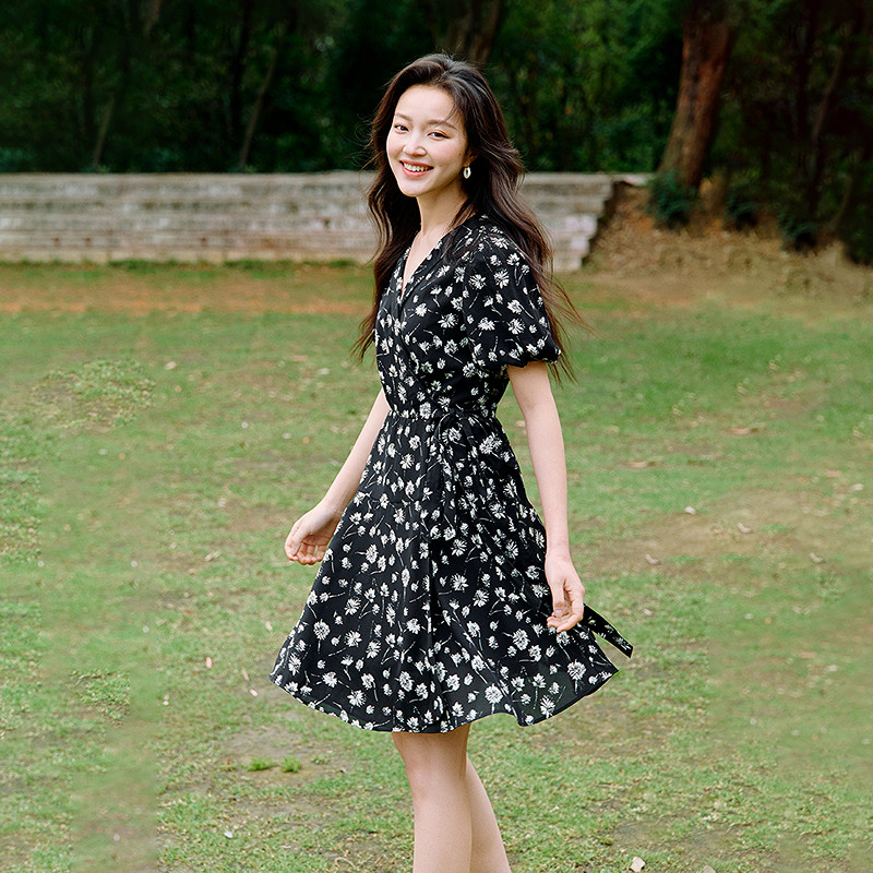 📚 【一秒入夏】茵曼夏季复古碎花围裹式连衣裙法式V领显瘦茶歇裙子