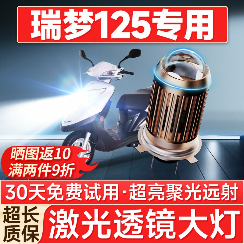 📚 轻骑铃木瑞梦125踏板改装配件摩托车LED大灯远近光一体透镜车灯泡