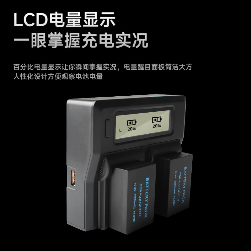 📚 NP-T125电池充电器适用富士GFX50S GFX50R GFX100 LCD双充充电器