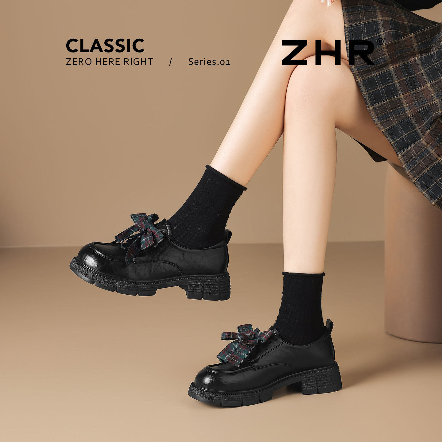 📚 ZHR则则乐福鞋女厚底2026春季新款黑色小皮鞋英伦风蝴蝶结单鞋子