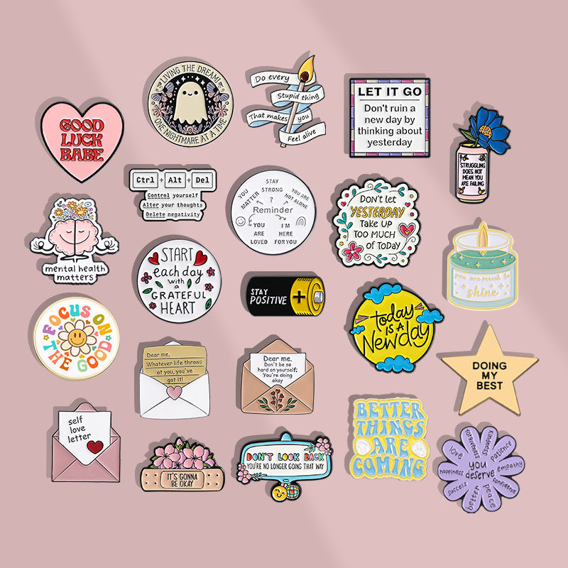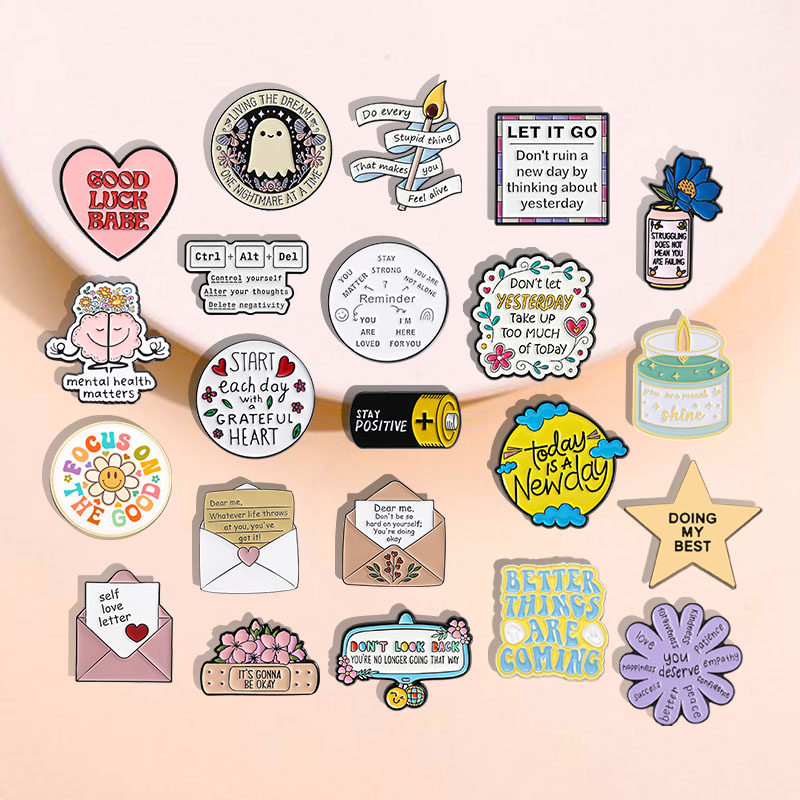 📚 简约百搭治愈短句胸针ins英文短句个性胸章金属徽章礼物背包配饰