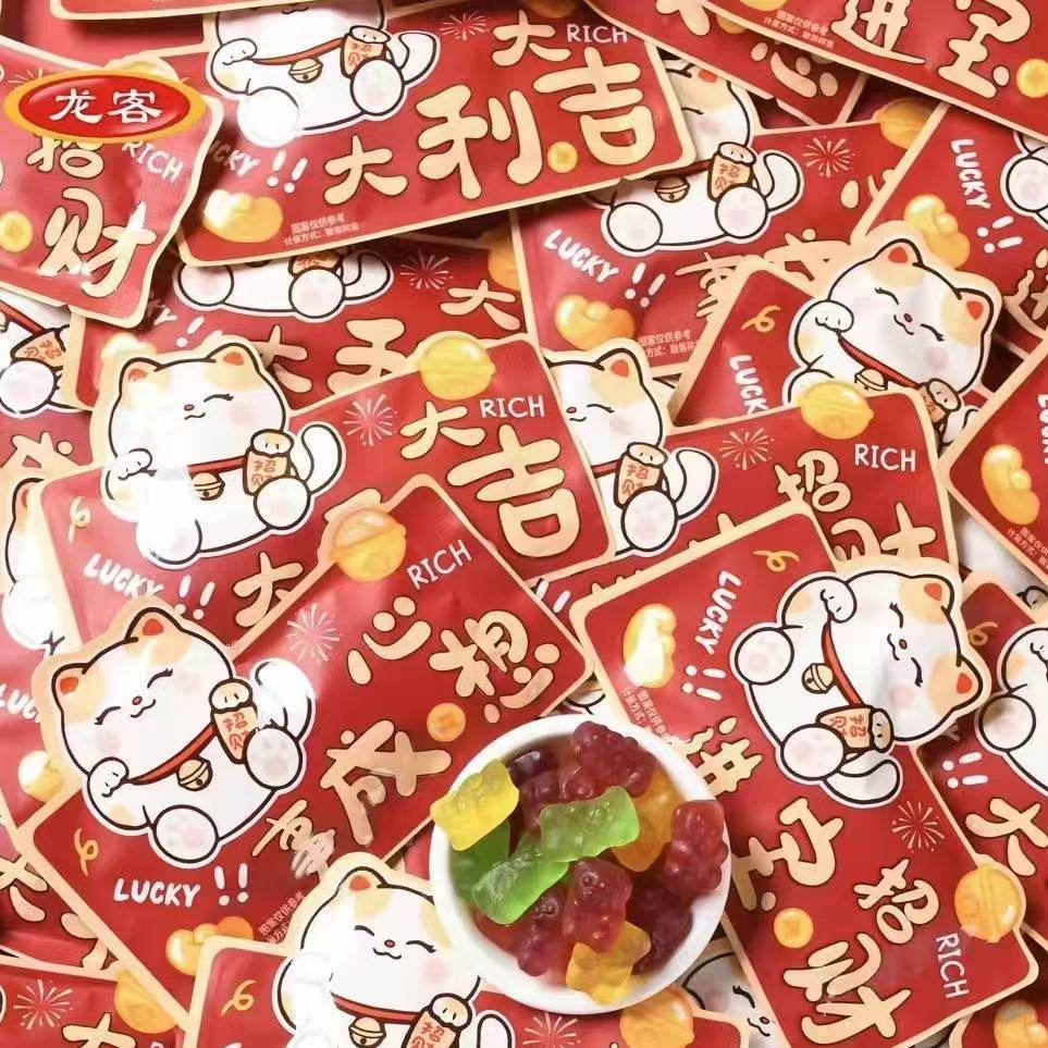 📚 龙客招财猫橡皮糖好寓意包装高颜值喜糖过年摆盘招待糖果小零食