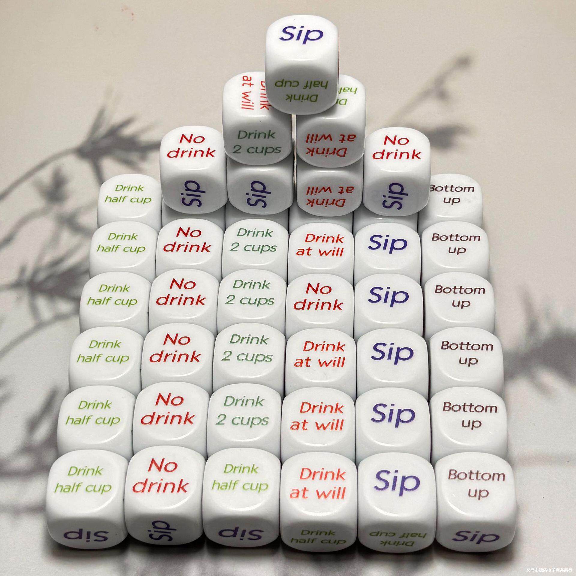 📚 英文酒令色子英文酒桌骰子酒桌游戏酒桌玩具酒吧助兴用品2CM