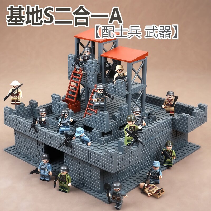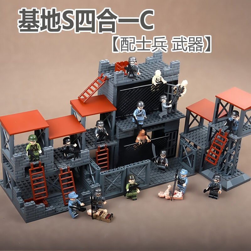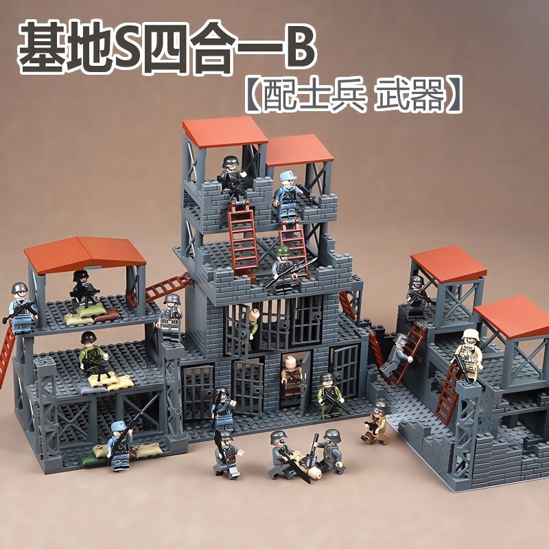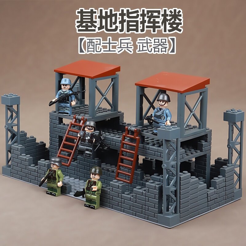 📚 二战军事基地碉堡战壕瞭望哨塔指挥哨站哨岗德军男孩子拼装玩具