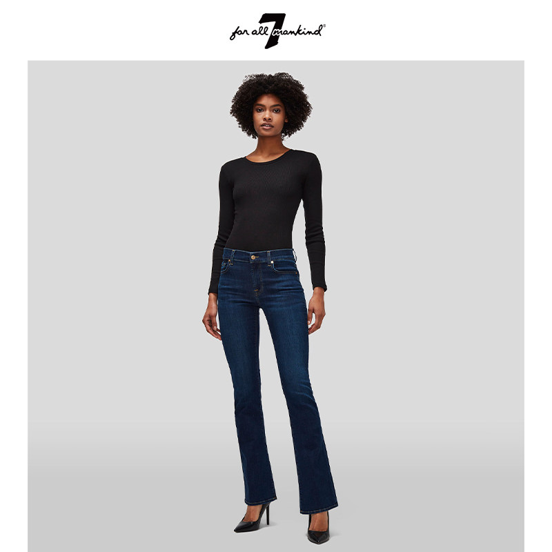 📚 7 For All Mankind女秋冬新品中腰深蓝水洗微喇牛仔裤BOOTCUT