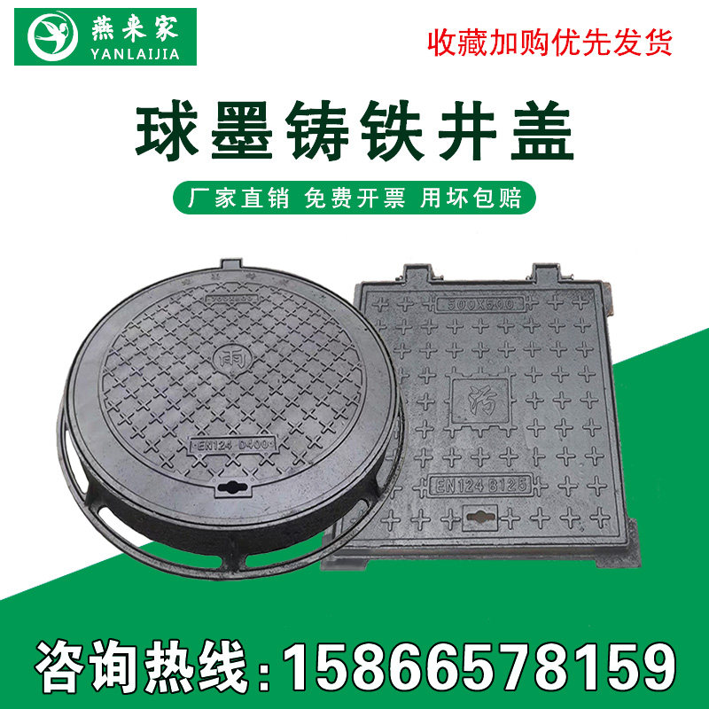 📚 球墨铸铁井盖圆形长方形雨水污水电力轻型重型双层阴W井窨井盖井