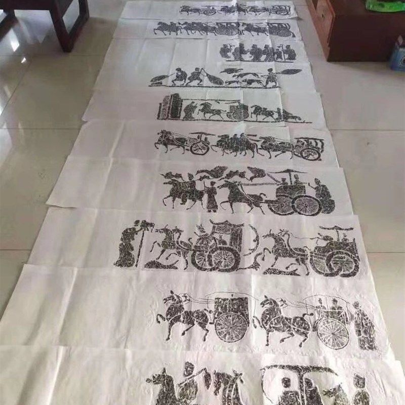 📚 10张汉画像石拓片汉车马出行图拓片每张136乘34厘米一套10张朱墨