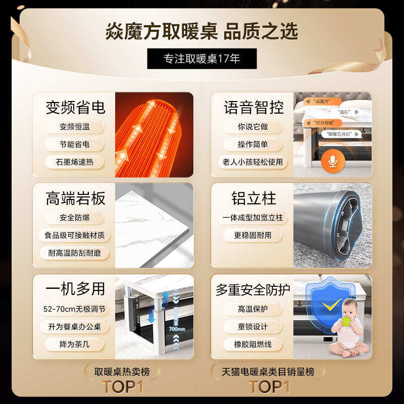 📚 焱魔方新款K7电暖桌取暖桌烤火桌子茶几一体升降电烤炉家用客厅