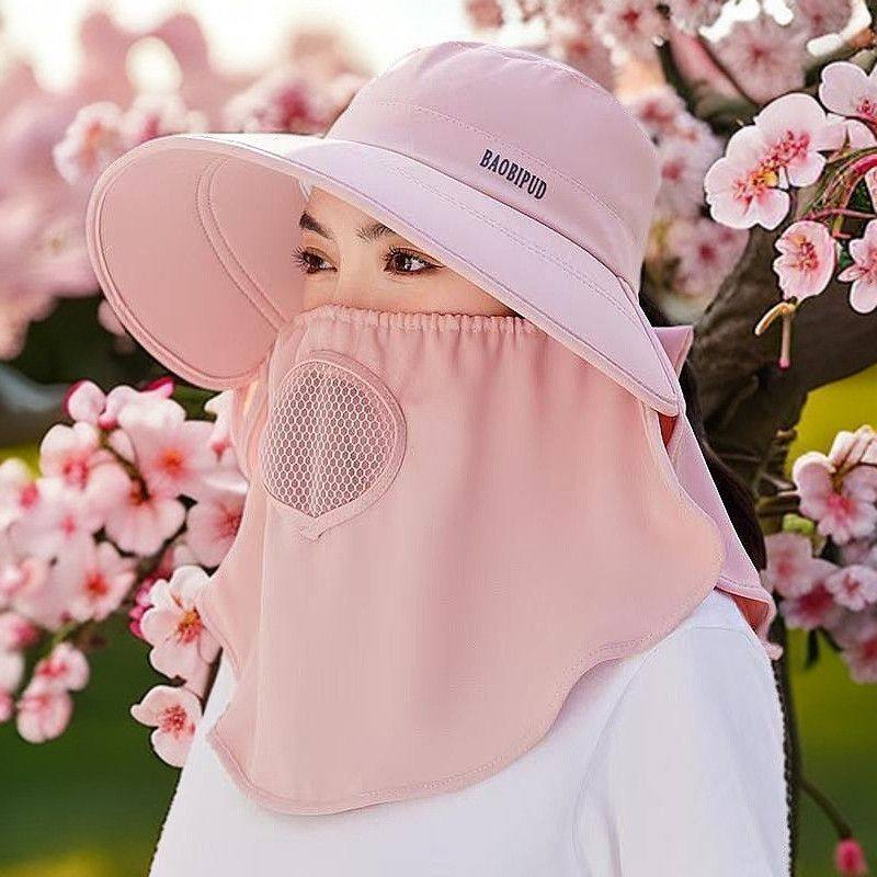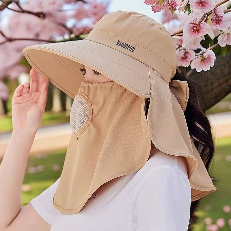📚 防晒帽子全方位遮脸护颈一体面罩户外太阳帽遮阳骑车种地农活采茶