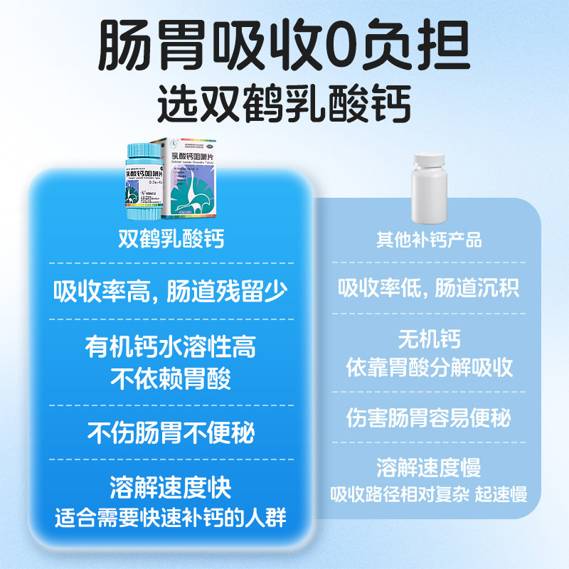 📚 双鹤药业乳酸钙儿童补钙国药中老年醋酸钙官方旗舰店有机钙片otc
