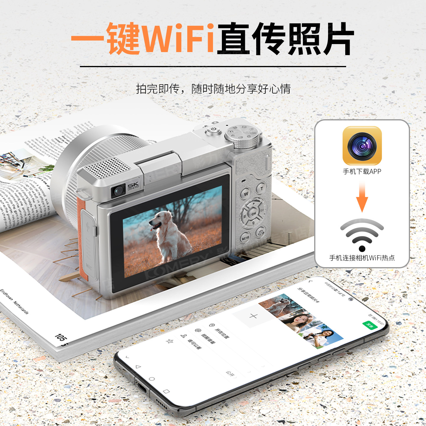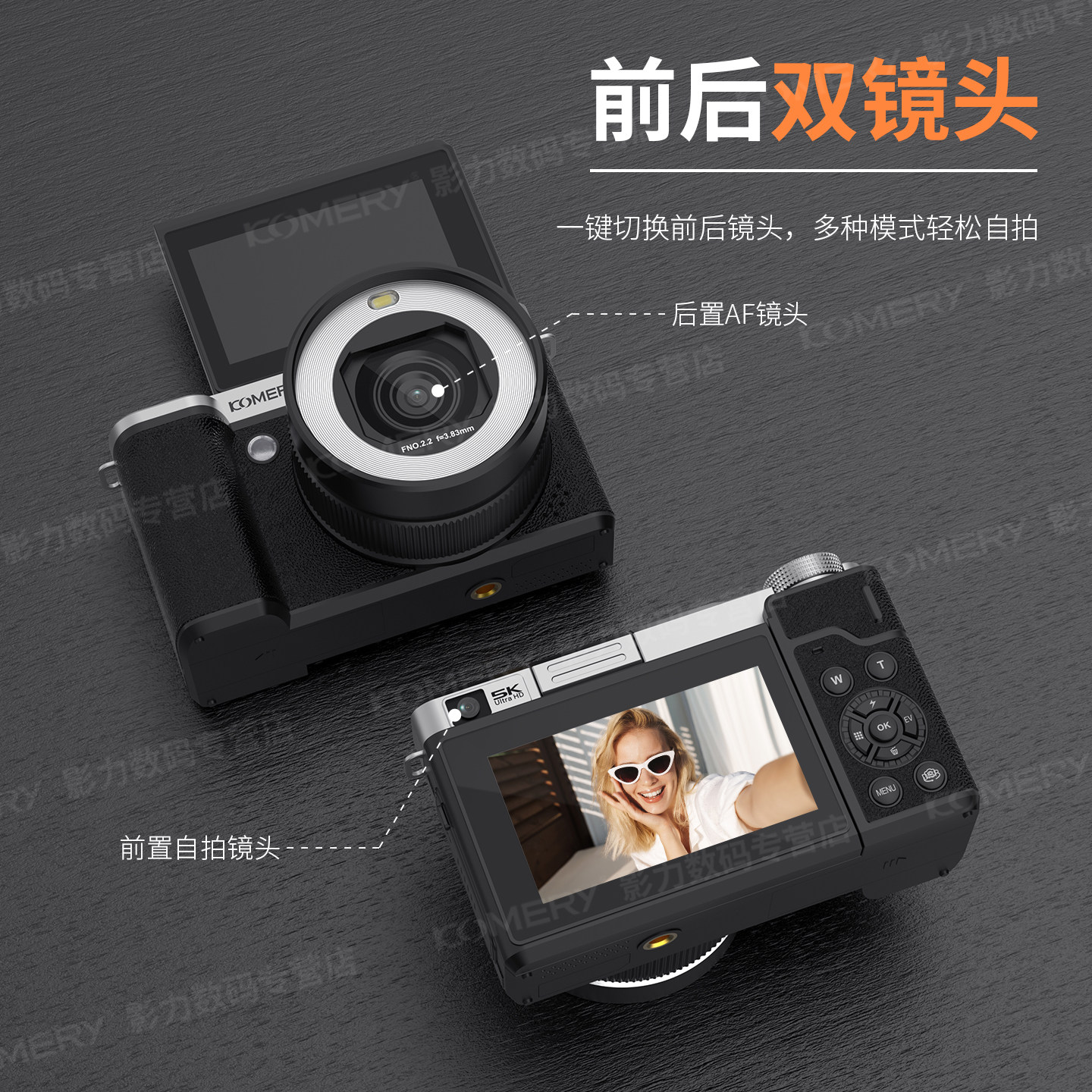 📚 KOMERY科美锐X7 5k双摄翻转屏数码相机学生入门微单女生美颜相机