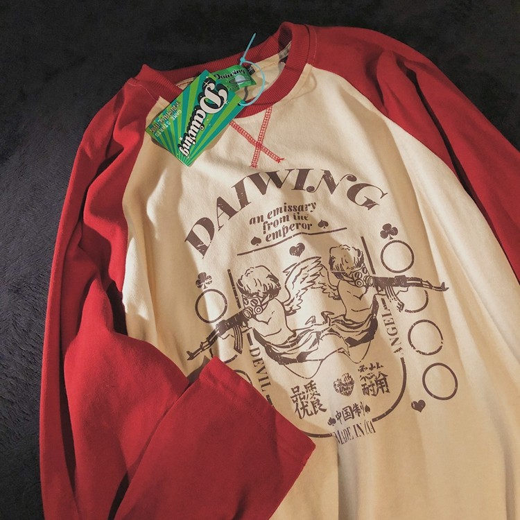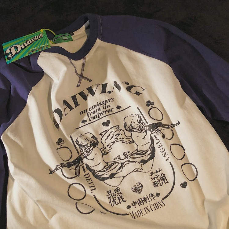 📚 Daiwing 开开心心 全力以赴 秋季男女拼接插肩长袖情侣宽松T恤