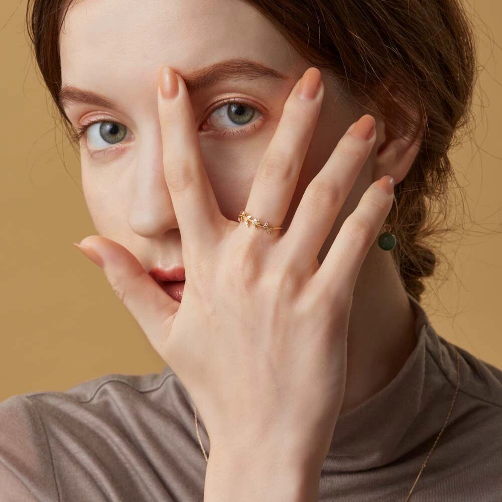 📚 日系轻奢agete同款 庭院系列 树叶不规则 曲线弧线 925纯银戒指