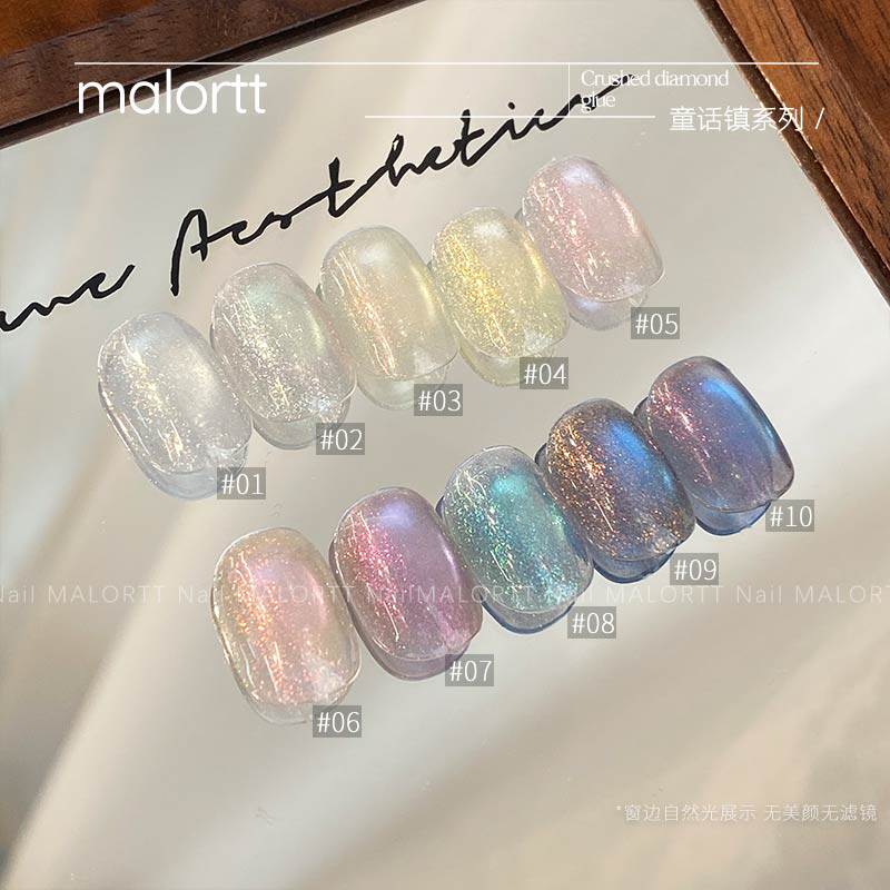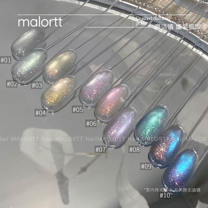 📚 麦鹿猫眼 童话镇 彩色云锦粉碎钻玻璃珠双光爆闪湿漉漉猫眼甲油胶