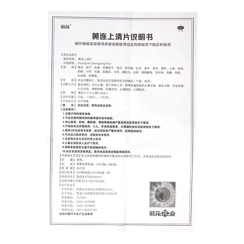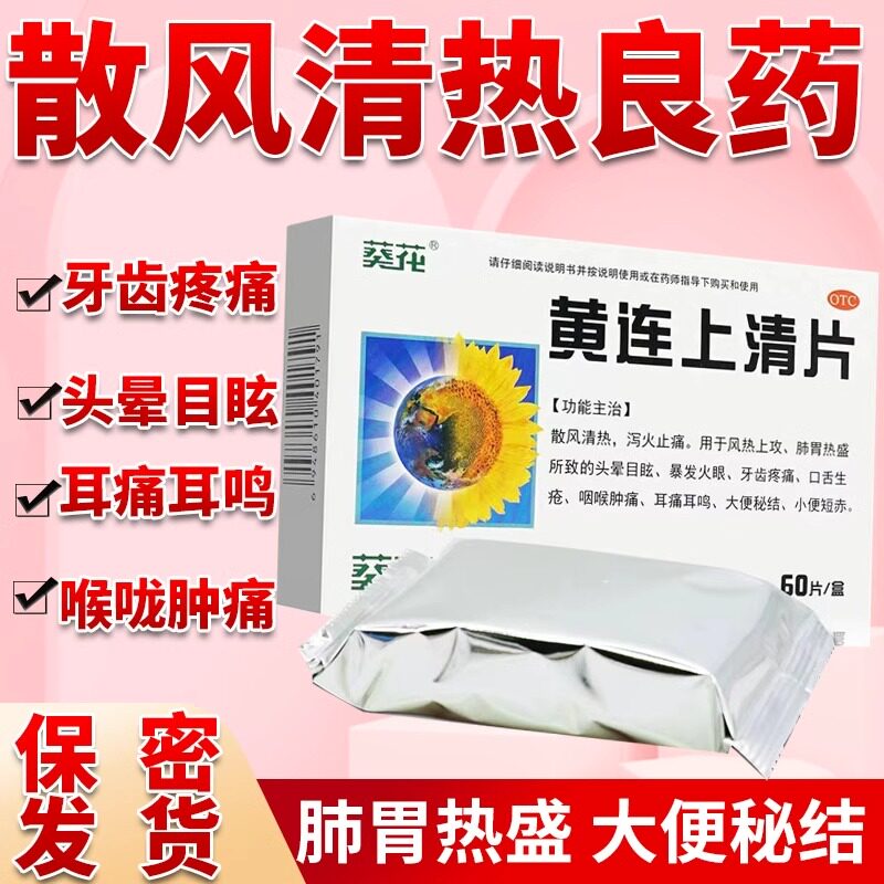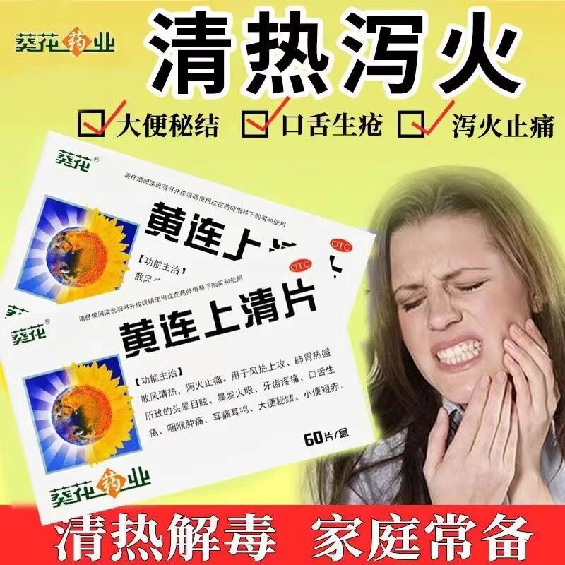 📚 葵花黄连上清片60片黄莲下火药去火药清热解毒牙疼牙龈肿痛消炎药