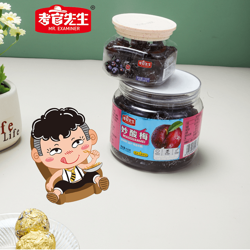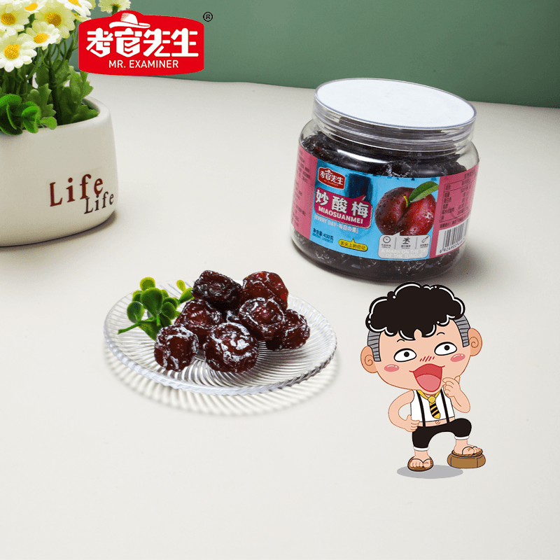 📚 考官先生罐装妙酸梅酸甜果干蜜饯李子梅肉干休闲零食厂家直销